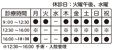 ※※12:30~16:00 は手術・入院管理の時間となります